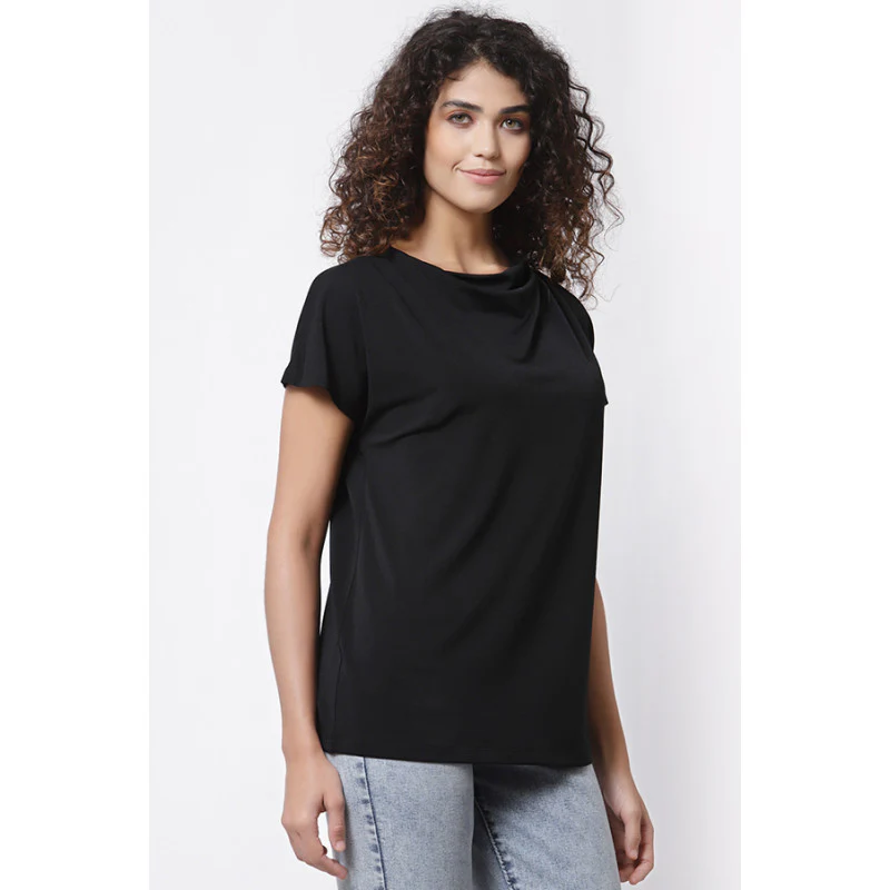 Women Black Cowl Neck T-Shirt